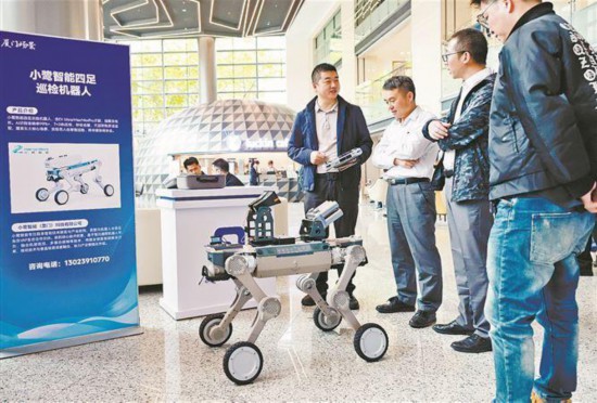 廈門按下制造業數智化轉型“加速鍵”:推動智能體走向生產線 小鷺智能(廈門)科技有限公司展示的四足巡檢機器人。本組圖 記者 陳立新攝
