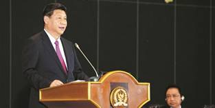 中國國家主席習近平在印度尼西亞國會發表重要演講,他表示,中國願同東盟國家加強海上合作,共同建設21世紀“海上絲綢之路”。中國願通過擴大同東盟國家各領域務實合作,互通有無、優勢互補,同東盟國家共享機遇、共迎挑戰,實現共同發展、共同繁榮。【詳細】