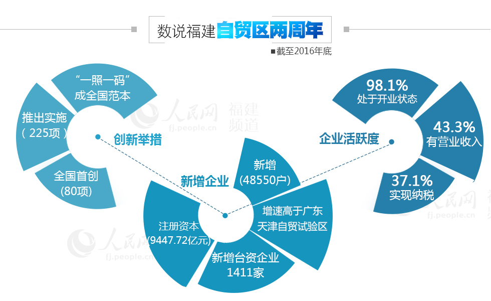 福建自貿試驗區迎來設立兩周年。近兩年,福建自貿試驗區以制度創新為核心,為福建省全面深化改革和擴大對外開放探索新途徑、累積新經驗,取得顯著成效。截至今年2月,總體方案186項試驗任務已實施172項,9批225項創新舉措中多達80項為全國首創。其中,“一照一碼”更是成為全國范本。