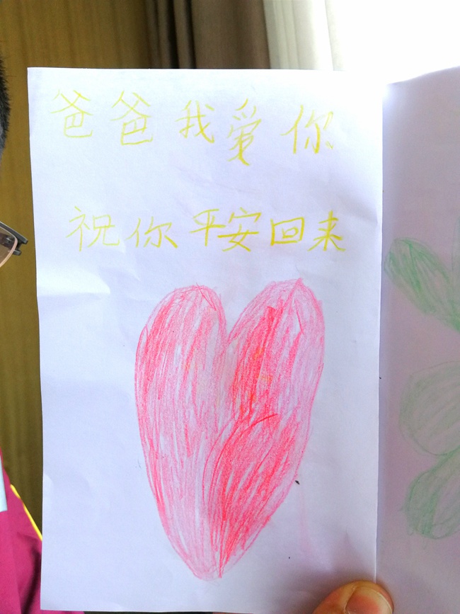 “爸爸,我愛你!祝你平安回來!”小小涂給愛心重重地上了色。 涂思義供圖