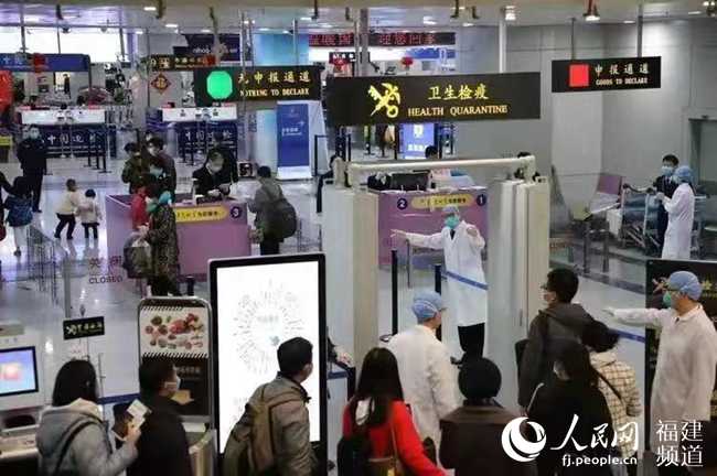 福州海關支援人員與機場旅檢關員全天候排查旅客。福州海關供圖