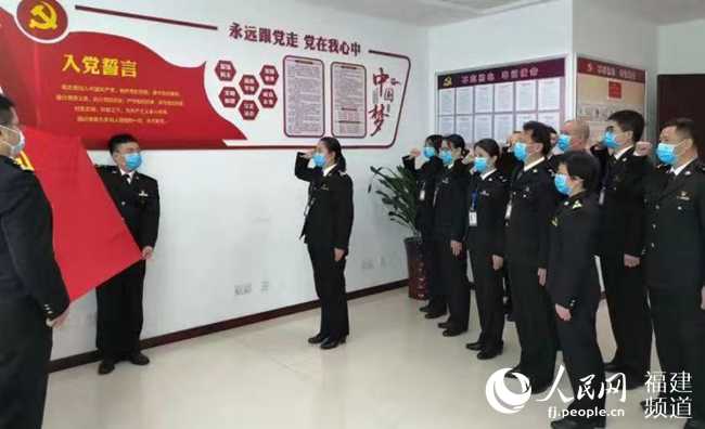 福州長樂機場海關組建臨時黨支部,重溫入黨宣誓。福州海關供圖