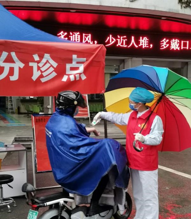 預檢分診黨員志願服務隊挺身戰“疫”,將預檢分診端口前移至醫院大門,加強出入醫院人員管理和體溫監測,發現體溫異常人員立即引導至發熱門診就診。實行“三嚴控、三禁止”,嚴控新型冠狀病毒侵入口,嚴控進入院區人員,嚴控醫務人員防護關,禁止非醫院職工、宿舍區用戶進入,禁止送外賣、快遞人員、出租車等非就診人員進入,禁止未戴口罩的人員進入,嚴守戰“疫”第一關口。