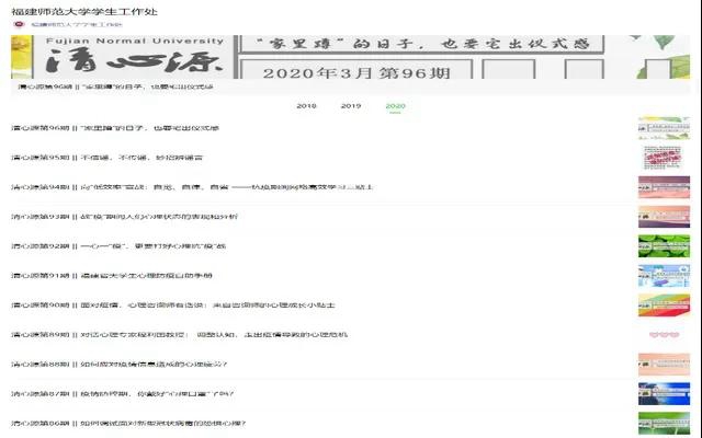 截至今年4月20日,福建師范大學心理健康指導中心已經連續推送16期不同主題的心理抗疫“清心源”特輯。