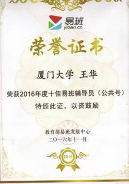 教育部十佳易班輔導員榮譽証書 廈門大學供圖