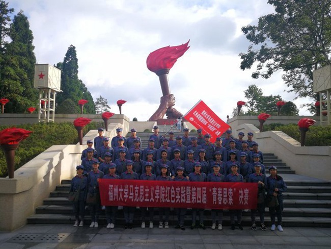 為更好地培育有著堅定的社會主義、共產主義理想信念的時代青年,福州大學馬克思主義學院以強烈的使命感和責任感,不斷進行思政課程教學改革。從2014年開始,在多年探索和多方調研的基礎上,福大馬院在思想政治理論課教學中首創並運用“青春思索——舞台化課題研究競賽法”,迄今舉辦全校性大賽共四屆,數千名大學生參賽,其中,第四屆大賽不但將參賽者由本科生推廣至碩士研究生,還將決賽地由校園延伸至革命聖地井岡山。實踐証明,該教學法有效提升了思政課程的吸引力、號召力,並大大激發了廣大青年學子學習思政課程的熱情。