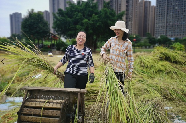 打谷 福建衛生職業技術學院供圖