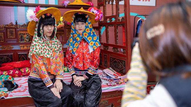 學生體驗惠安女服飾。 泉州職業技術大學供圖