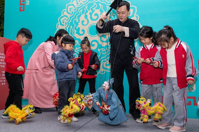 教師子女也來體驗提線木偶的表演。 泉州職業技術大學供圖