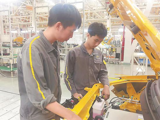 莆田華僑職業中專學校學生在雲度新能源汽車股份有限公司實習。朱國粦 攝