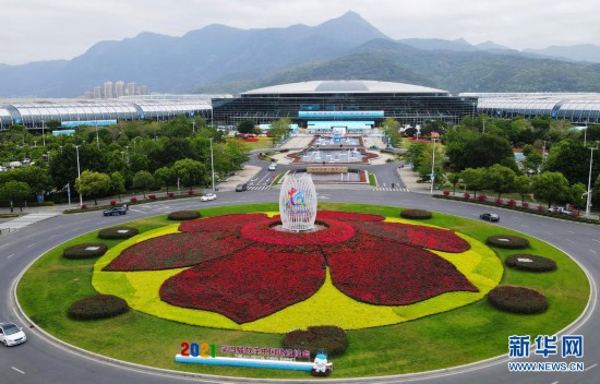 這是第四屆數字中國建設峰會主會場福州海峽國際會展中心(4月22日攝,無人機照片)。
