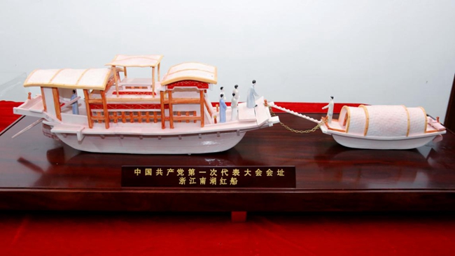 陶瓷作品《紅船》形象生動地刻畫了中國共產黨第一次代表大會的場景。徐銘澤攝