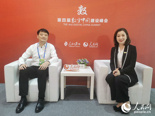 中國鐵塔股份有限公司福建省分公司行業拓展部總經理蘇華峰接受人民網採訪。人民網 葉青卿攝