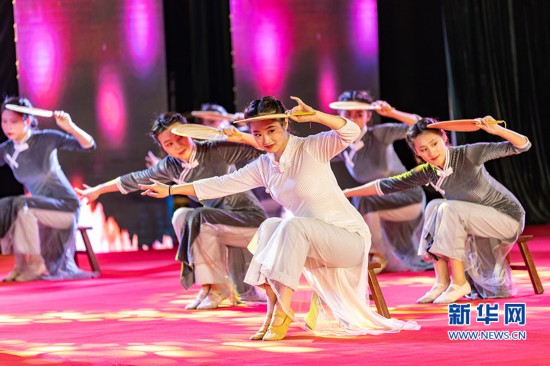 活動現場的歌舞表演《漁光曲》。新華網發(鄧皓予 攝)