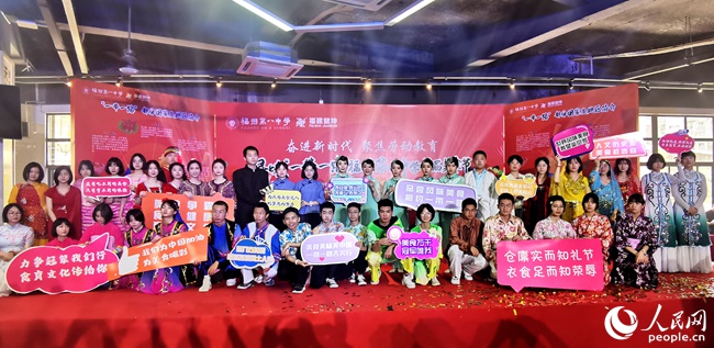 身著特色服飾的學生介紹推介地方美食。人民網 林盈攝