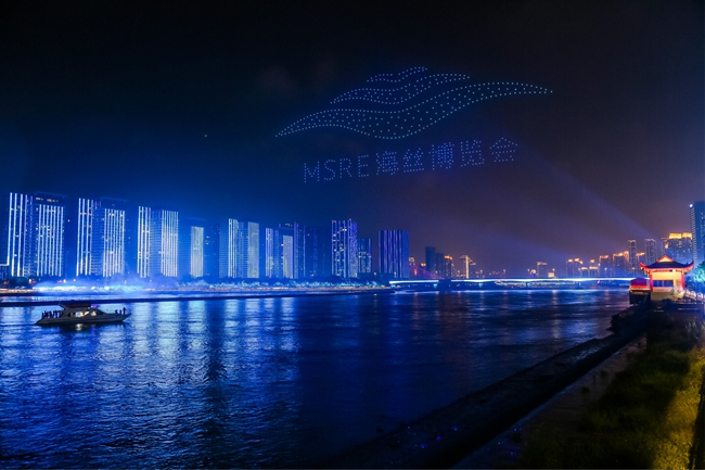 人民網福州5月18日電 (王銑)為迎接第四屆海上絲綢之路博覽會暨第二十三屆海峽兩岸經貿交易會,5月17日晚,一場特別的視聽燈光秀在閩江上空上演。據了解,這是福建首次融合焰火、燈光、無人機及音樂表演的山水大秀,以山為屏,以水為幕,以閩江兩岸現代化建筑群為前景,實現高、中、低,水、陸、空的全景式視聽效果。