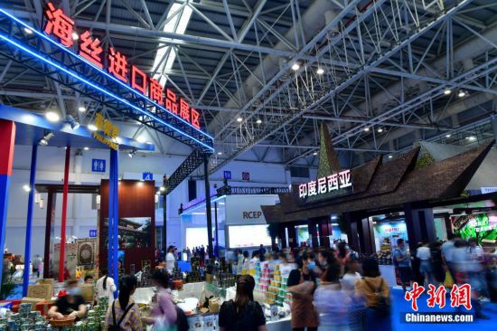 圖為在海絲進口商品展區,各國工藝品和風味特產,受到民眾的歡迎。 張斌 攝
