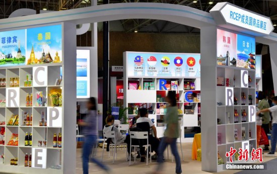 圖為觀眾在《區域全面經濟伙伴關系協定》(RCEP)成員國商品展區了解展出的相關產品。 張斌 攝