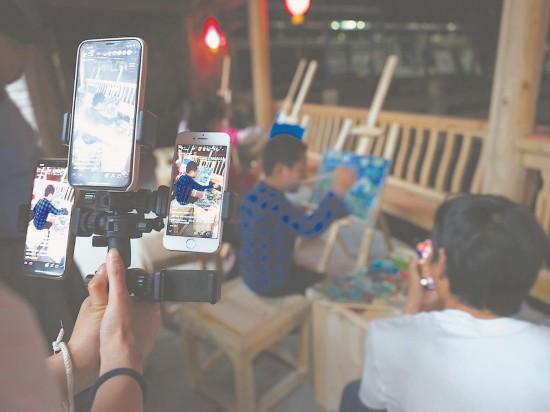 在壽山鄉壽山村,村民晚飯后便開始學畫畫。通過直播等方式,他們的作品很快就能賣出去。