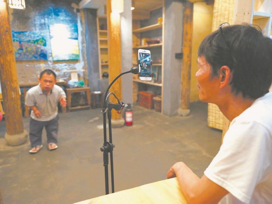 身高隻有1.16米的沈明輝,通過畫畫擺脫了貧困並收獲自信。恰逢“人人都是藝術家”公益繪畫教學項目的林正碌老師來訪,沈明輝對著直播鏡頭,深情地唱起原創歌曲《往前走不停留》。