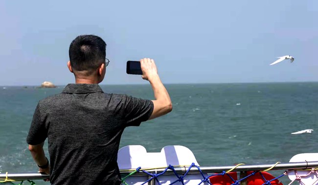游客在游輪上欣賞海景。湄洲島宣傳部供圖