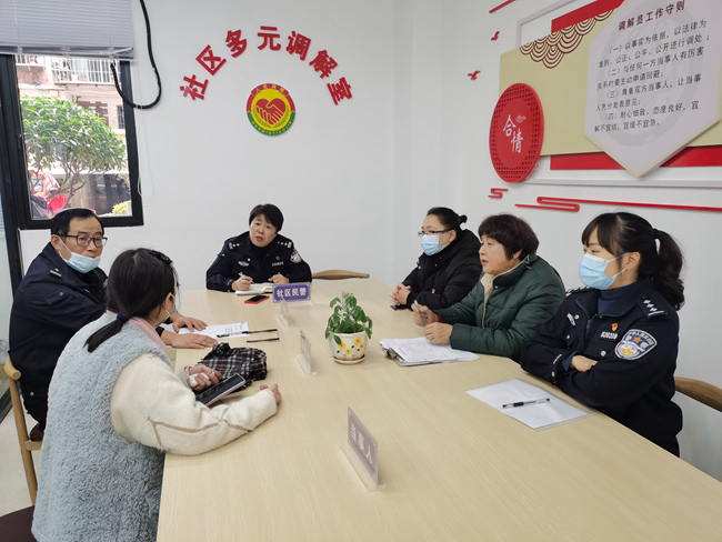 莆田市公安局民警在社區組織推動矛盾糾紛調解。莆田市公安局供圖