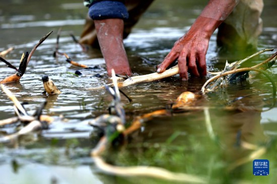 連日來,福建省武夷山市五夫鎮的蓮農搶抓農時,進行藕苗開挖和移栽。五夫鎮在白蓮種植的基礎上發展萬畝荷塘、蓮田民宿等農業觀光項目,帶動農民增收。