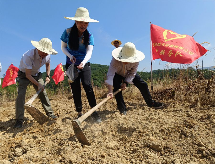 頂著烈日,走進鄉村,挽起褲腳,邁入田地,揮起鋤頭,洒下種子……寧德市古田縣泮洋鄉后路村的山田上一片熱火朝天的景象,這是福建省高速公路信息科技公司和福建省高速技術咨詢公司所屬黨支部將“主題黨日”搬到了田間地頭的場景。