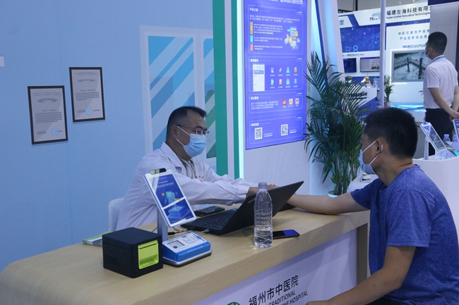 福州市衛健委在展區內搭建了“全流程模擬就醫體驗區”,市民可在“榕醫通”微信公眾號“數字峰會專區”進行預約挂號,通過刷臉或刷多碼協同碼就能體驗取號、就診、結算、取藥、檢查等就醫全流程。目前該應用已在福州市中醫院上線,現場還有福州中醫院醫生提供免費中醫健康咨詢服務。