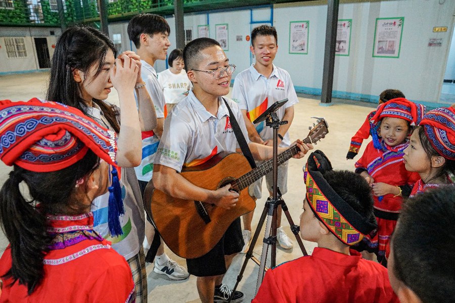 實踐隊成員以“守護朝陽 助力成長”為主題,根據畬族少年兒童的實際情況,開設了普通話普及推廣、暑期安全知識課堂、音樂課堂、趣味運動會及共同繪制環保袋等活動。活動中,實踐團隊成員與畬村少年兒童一起玩游戲唱歌、建筑模型拼裝。讓畬村青少年在親身體驗中感受學習的快樂,豐富了畬族少年兒童的假期生活,為他們帶去更多陪伴與溫暖。