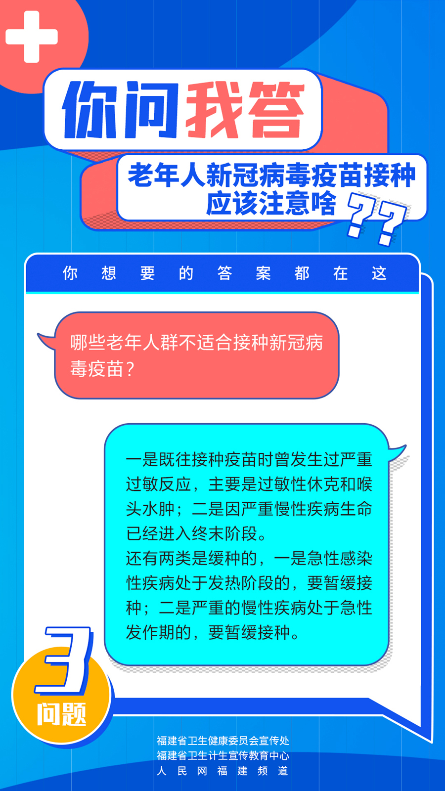 老年人接種疫苗是否安全?會有更強烈的不良反應嗎?哪些老年人群不適合接種新冠病毒疫苗?你問我答,快問快答!老年人新冠病毒疫苗接種究竟應該注意啥?