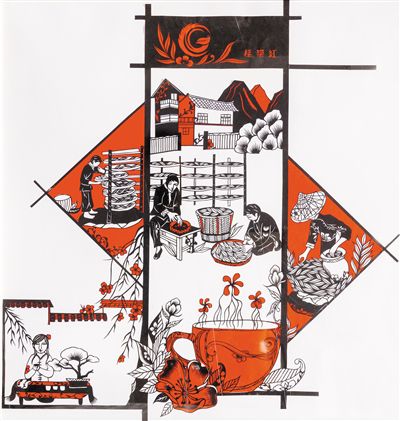 剪紙《柘榮高山白茶——桂嶺紅》,作者陳水雲。