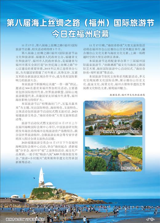 11月17日,第八屆海上絲綢之路(福州)國際旅游節啟幕,相關活動將持續1個月。