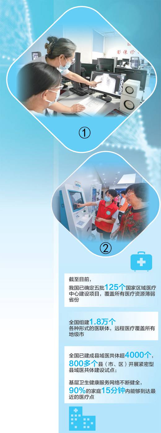 推動優質醫療資源下沉是促進優質醫療資源擴容和區域均衡布局的重要一步。近年來,我國大力建設國家區域醫療中心,組建各種形式的醫聯體,推動優質醫療資源下沉,增強欠發達地區、基層和農村的醫療服務能力,讓群眾在家門口就能享受到優質、高效的醫療服務。
