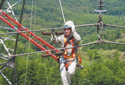 山多地少、地形復雜,福建省高壓輸電線路往往橫跨數座高山。“腳下是萬丈深淵,身旁是茂密山林,耳邊還有高壓電接觸屏蔽服的噼啪聲響,唯一的依靠就是直徑2厘米的懸挂導線,要說心裡不害怕,那肯定是假的。”入職早期,一次高空作業,天氣驟變、黑雲壓城,打小深諳福州氣候的馮振波,立馬和工友加快作業速度,10分鐘不到就完成作業。剛剛踏足地面,暴雨便傾盆而至。“再晚一步,設備和人就隻能保一樣。”馮振波說。