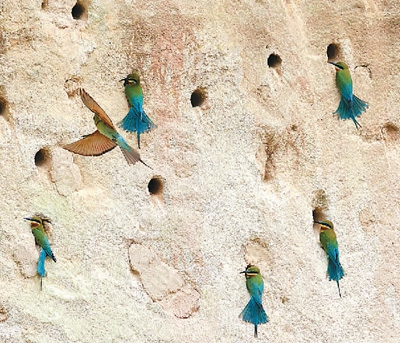 在福建省廈門市五緣灣栗喉蜂虎自然保護區內,80余隻栗喉蜂虎來此“安家”。