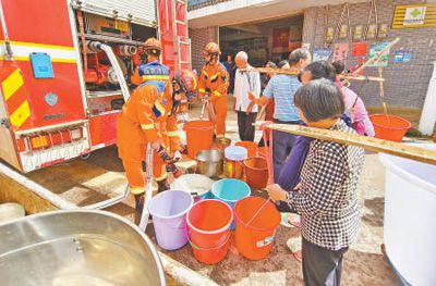 6月20日,福建省龍岩市消防救援支隊救援人員為武平縣象洞鎮群眾送去生活用水。