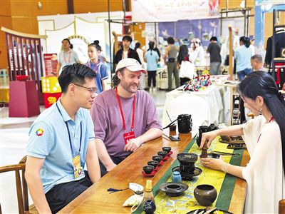 學寫毛筆字,體驗漆藝、簪花,觀看茶藝表演……在青年集市活動上,美國青年積極參與多項體驗活動,為中國文化的深厚底蘊而著迷。來自華盛頓的裡格爾·亞當告訴記者,這是他第七次來中國。“2016年第一次到中國,我就和中國朋友們建立起聯系,心中也埋下了深入了解中國、結交更多中國朋友的種子。”亞當說,他將於今年7月到上海參加世界人工智能大會,“我希望在學習和工作中同中國朋友有更多交流與合作,共同為建設一個更加美好的世界貢獻力量。”