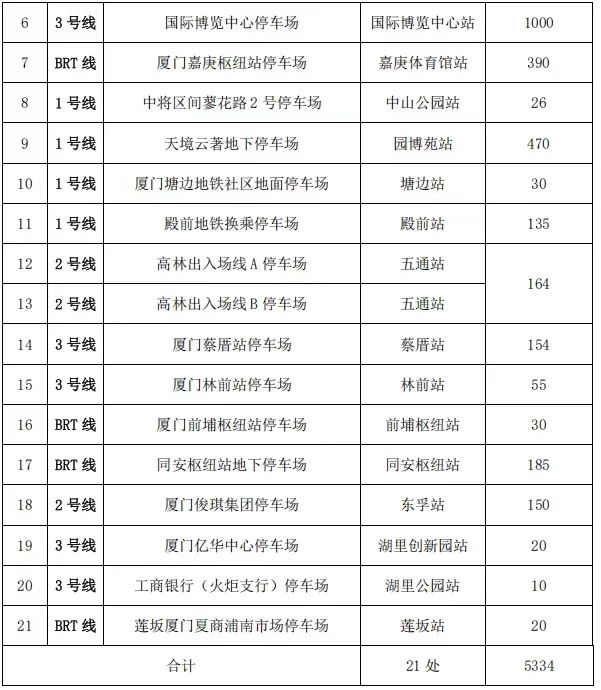 廈門市還布局21個免費P+R停車場:本次國慶期間,全市共推出21個停車場、5334個車位,面向地鐵換乘車主免費開放,覆蓋廈門六區及線網各條線路。 用戶可通過“廈門地鐵”APP、“廈門交通”小程序或“i車位”微信公眾號完成一次登記后,即可使用停車換乘服務,國慶期間免費停車。