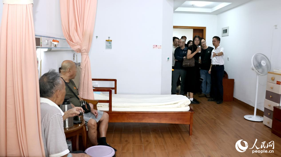 採風團實地感受老年養護區的居住環境。人民網記者 李昌乾攝