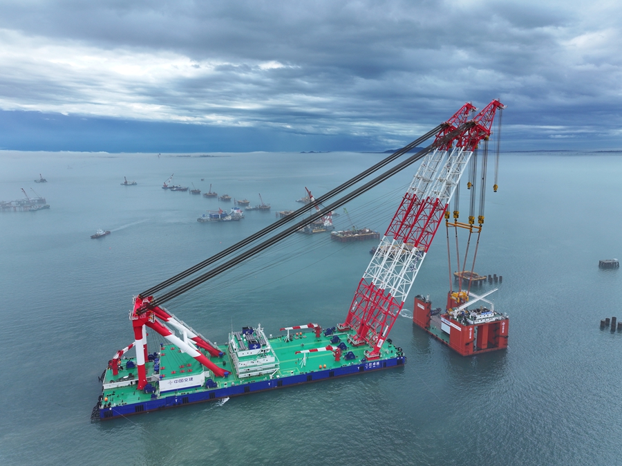 在風浪頻發、潮差達3-4米的海域完成“積木式”拼裝,難度可謂“海上舉重”。