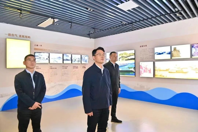 在鬆山圍墾展示館,董敬太認真觀看了圖文展陳、歷史實物和影像資料,詳細了解鬆山圍墾工程規劃建設的艱苦奮斗歷程。