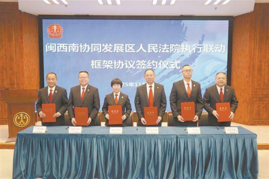 2025年11月7日,閩西南協同發展區人民法院執行聯動框架協議簽約儀式在廈門中院舉行。