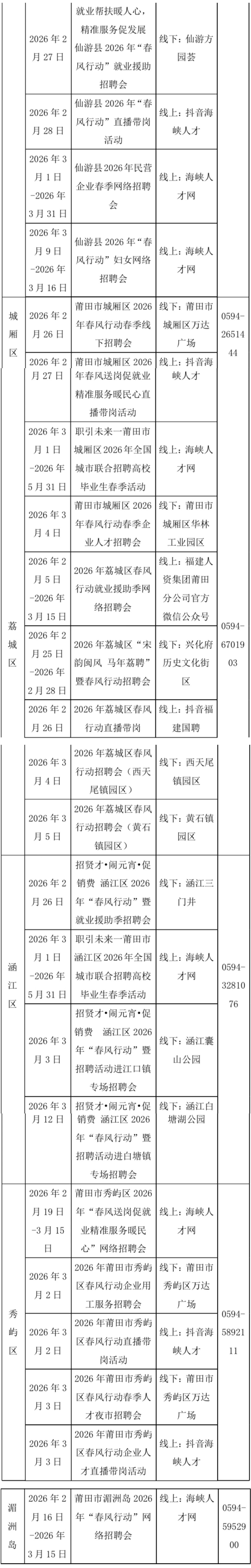 除春節前后階段性集中招聘活動外,2026年莆田市將圍繞重點群體、重點產業、重點領域需求,打造“全年無休”的專項招聘服務體系,精准匹配用工與求職需求,實現“企業找才不費勁、人才擇業有方向”。全年重點專項招聘活動安排如下: