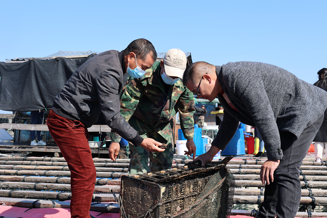 安凱鄉黨員養殖戶講解鮑魚養殖技巧