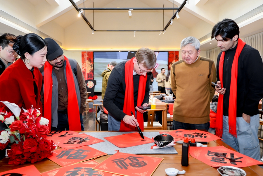 活動現場,外國專家們興致盎然地體驗了多項閩南傳統年俗。在“石上刺繡”影雕台前細心點琢,在墨香扑鼻的生肖拓福環節印制出一幅幅靈動的祝福,在書法體驗區提筆寫下“春”“福”等吉祥漢字……此外,嘉賓們還參觀了閩南石雕博物館,觀賞了《石語茶聲》實景演出與精彩的《掌上木偶戲》表演,在石頭的故事與指尖的藝術中,深入領略了海上絲綢之路的歷史文脈與閩南文化的深厚底蘊。