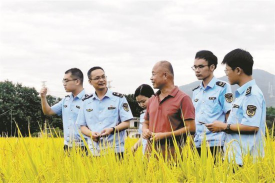 市場監管人員深入后田村田間地頭,調研“知青米”產銷情況。