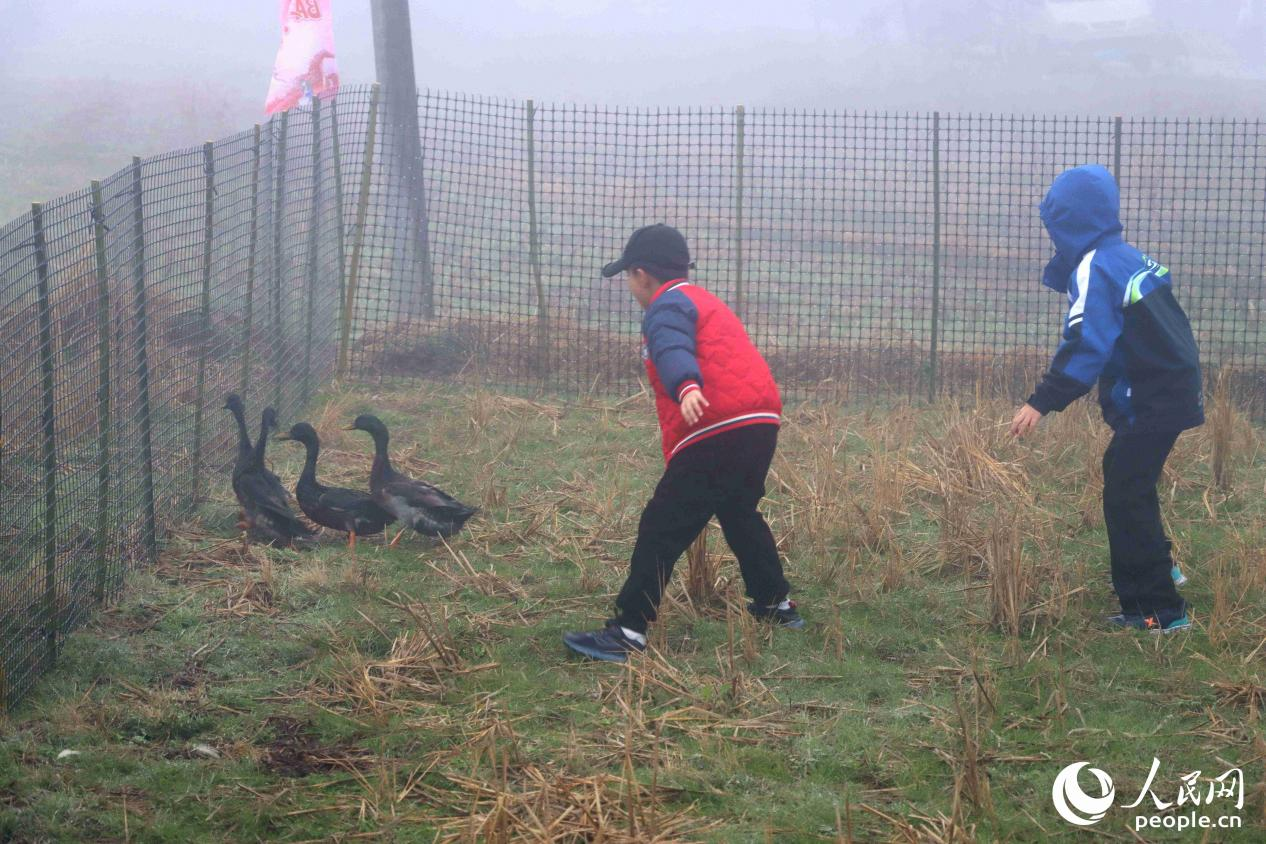 孩子們追著鴨子,在追逐嬉戲中親近自然。人民網 謝星宇攝