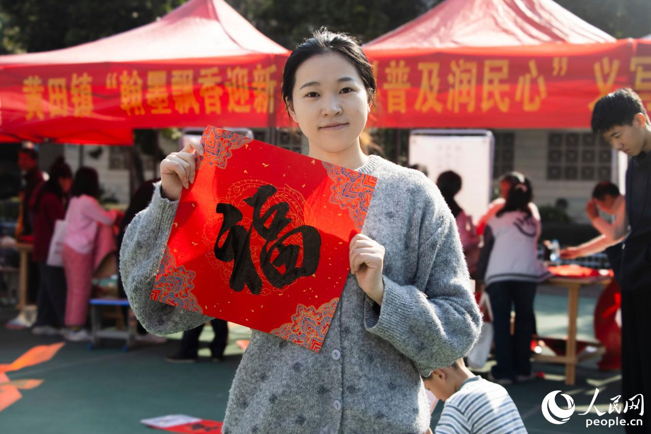 當地居民向鏡頭展示“福”字。人民網 林銘賢攝