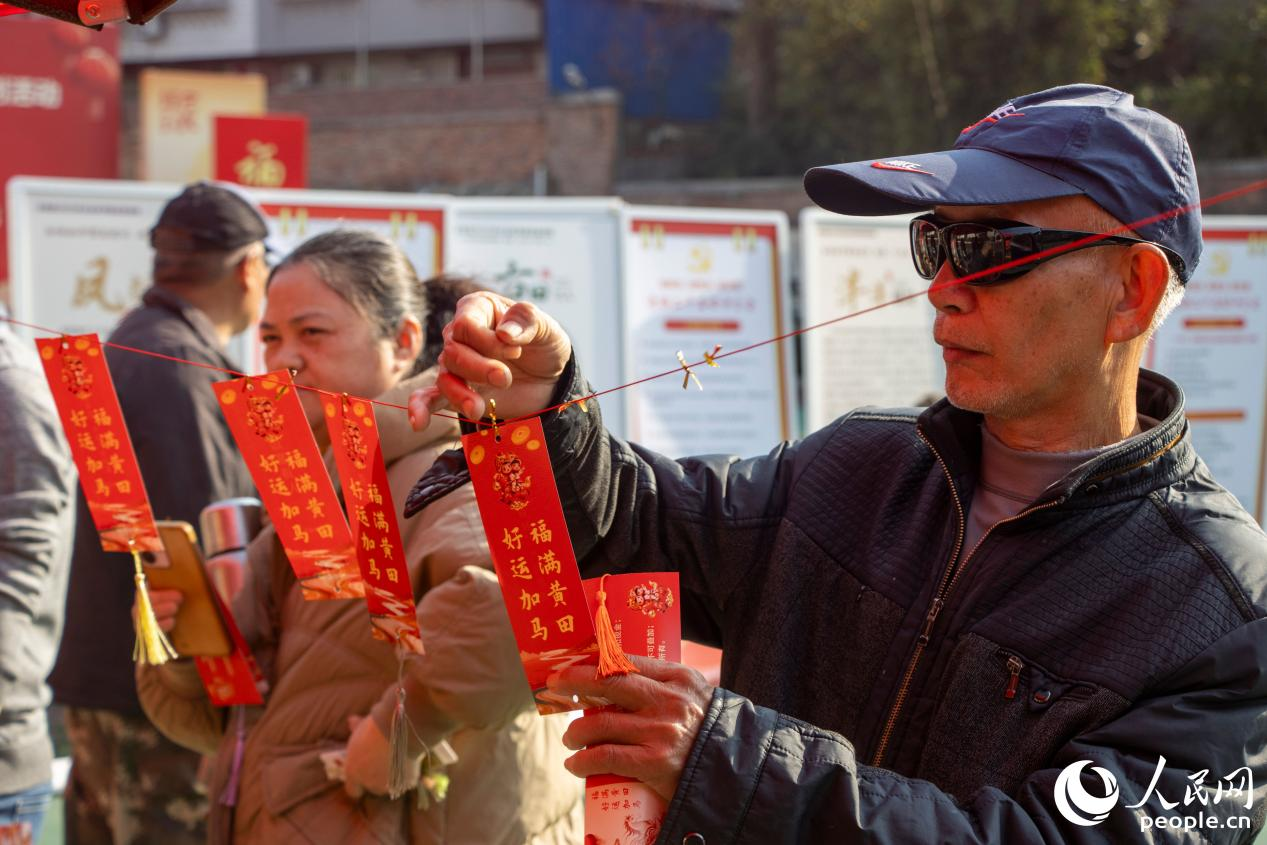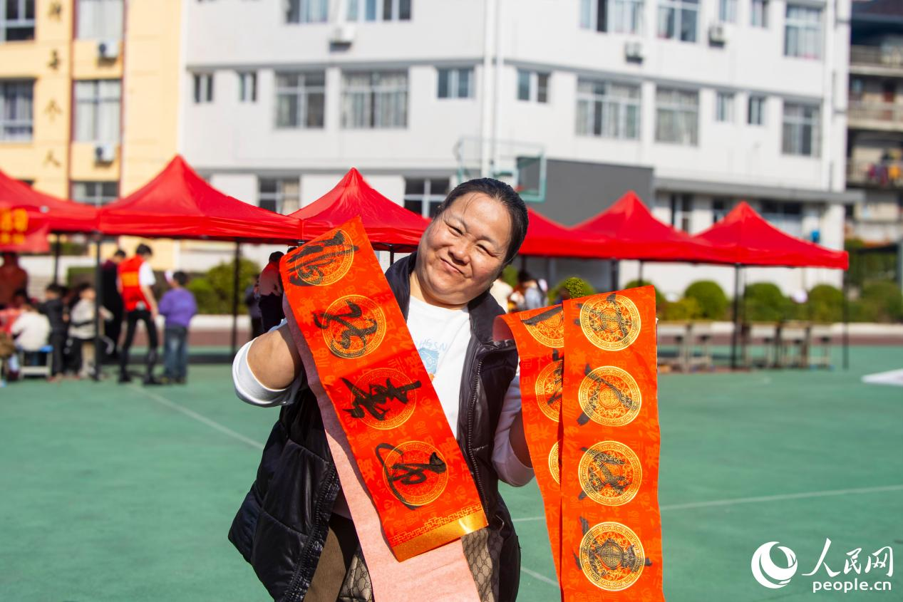 當地居民展示剛領到的春聯。人民網 林銘賢攝
